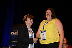 I have loads of semi-written blog posts in notebooks and on scraps of paper and I will eventually get round to typing them up and finishing them. While I have a few minutes though, I wanted to share what is now no longer really news but is still quite exciting: I won an award. Or rather my paper did. The paper I presented at the International Political Science Association (IPSA) World Congress on 24th July 2014 in Montreal won the Francesco Kjellberg award for new scholars. Ok I see you raising an eyebrow, new scholar? Well I wasn’t entirely comfortable about that either but this is measured by time since PhD and I therefore do fit the criteria. Details of the prize are on the IPSA website. I am totally blown away that anyone would think that my work is ‘outstanding and worthy of publication in a leading political science journal’ (the other criteria). I therefore wanted to say thank you publically to those who made this possible and who are responsbile for this hideous picture of me grinning like a drunk (I wasn’t!) Cheshire cat coming into existence. There are several more pictures from the conference including another of me receiving the award on the conference flickr stream.